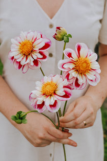 Openbloemige dahlia's hebben een open hart met losse lintbloemen rond het hart. Door deze structuur is deze dahliasoort eerder luchtig en elegant. Door het open hart is ze een festijn voor vlinders, bijen en andere bestuivers. Zet ze dus zeker in je border. Helaas blijven deze soorten minder lang goed op vaas.
