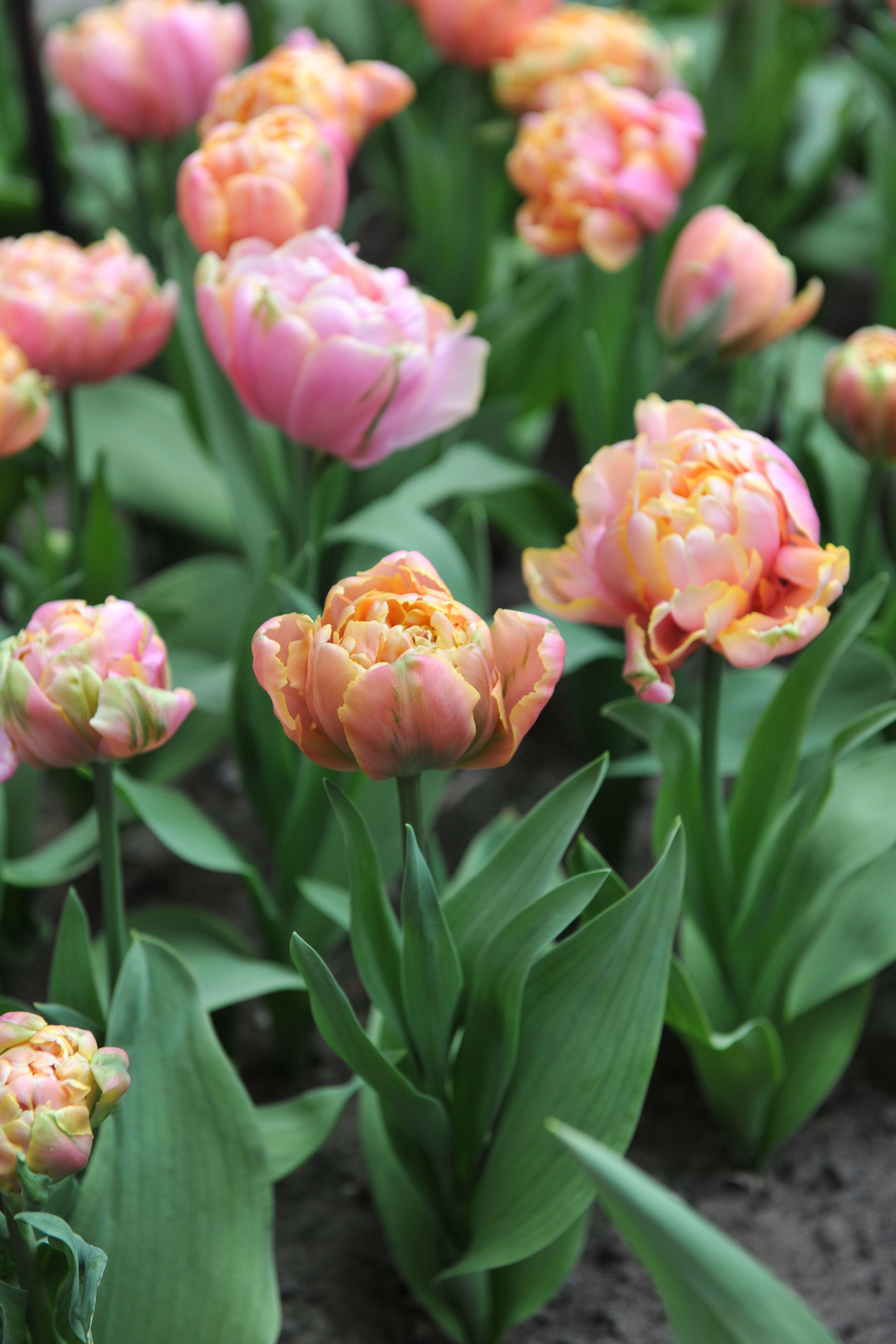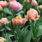 Deze tulp heeft een spectaculaire pioenvorm met zachtroze en abrikooskleurige bloemblaadjes die elegant golven. Ze opent als een feestelijke rozet en trekt alle aandacht in tuin én vaas. Een echte blikvanger voor wie houdt van kleur en beweging in het voorjaar.