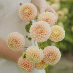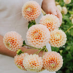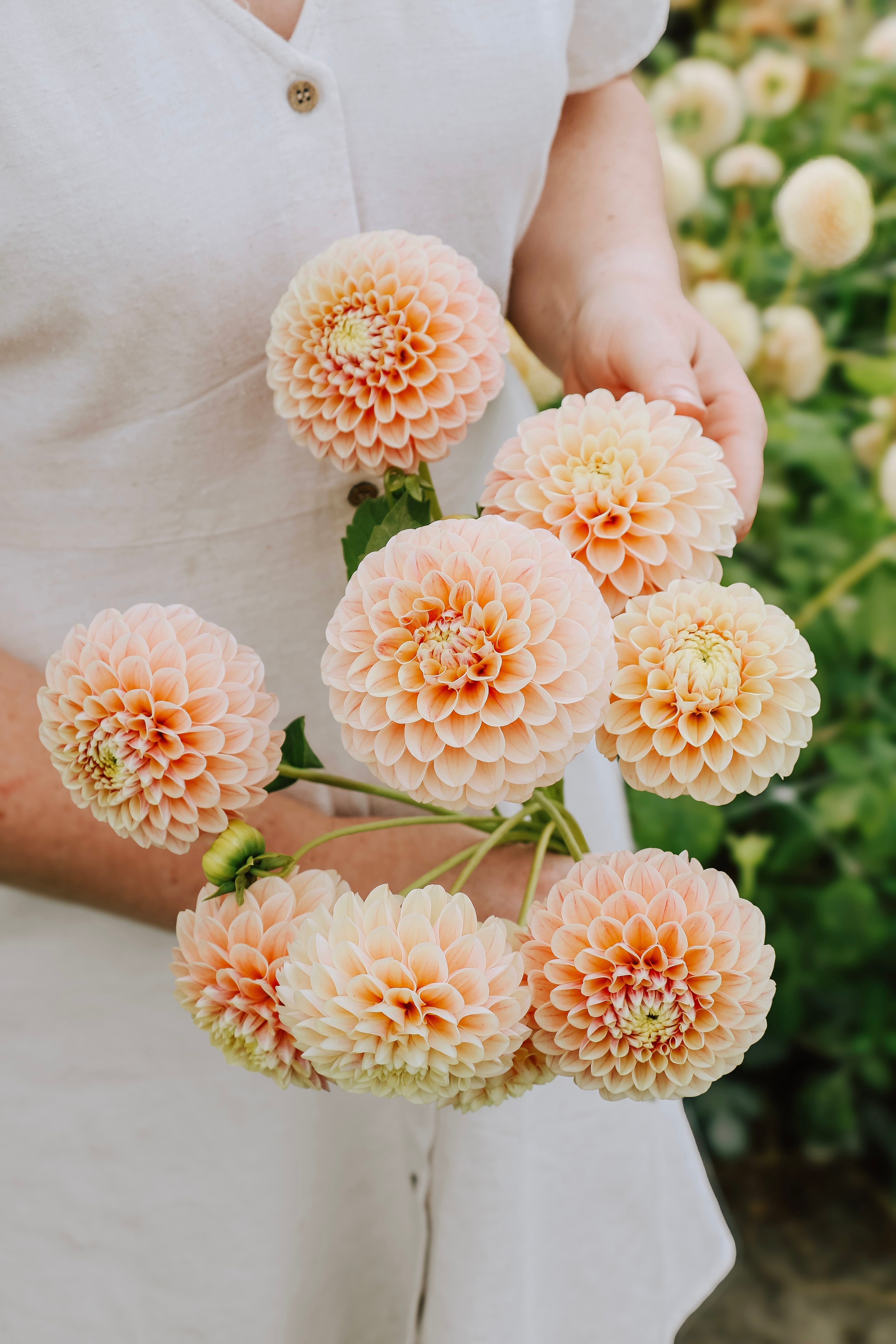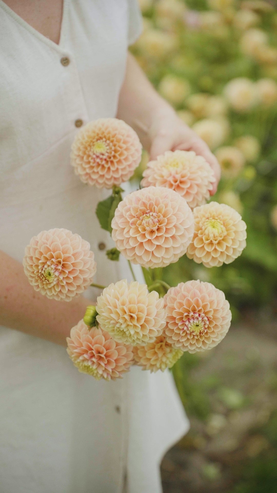 Deze dahlia heeft middelgrote bloemen van het type fimbriata, ook wel hertengeweidahlia's genoemd. De bloemblaadjes eindigen in een splitsing. Heel mooi. De kleur is perzik met een vleugje crèmegeel en roze. Een aanrader voor de pluktuin door haar goede plukkwaliteiten.