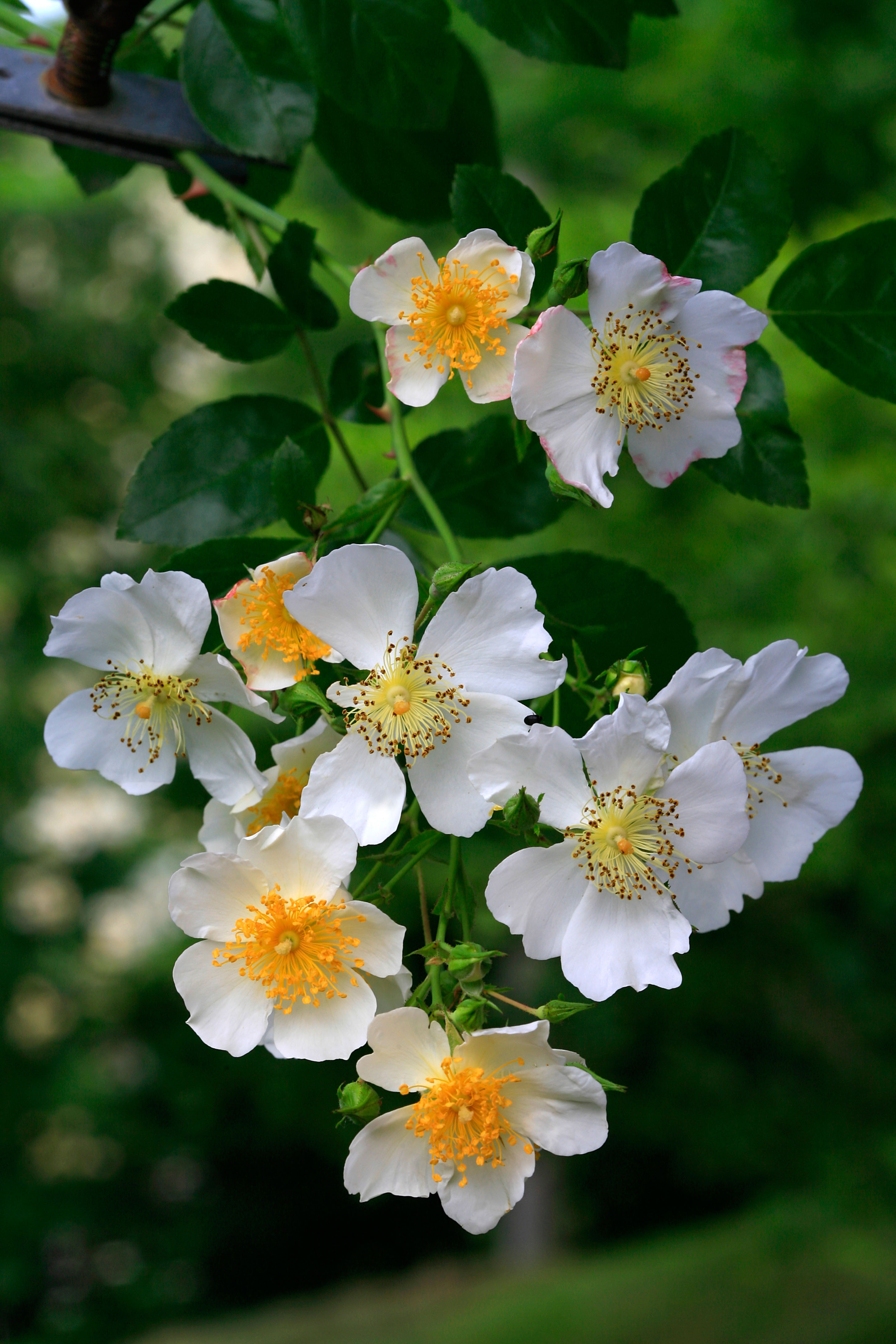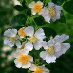 'Kiftsgate' is een indrukwekkende ramblerroos die bekendstaat om haar enorme groeikracht en overvloedige bloei. In de vroege zomer verschijnt een zee van kleine, enkelvoudige witte bloemen met een warmgele hart, die samen grote trossen vormen. Ze verspreiden een lichte, zoete geur en trekken bijen en andere insecten aan.