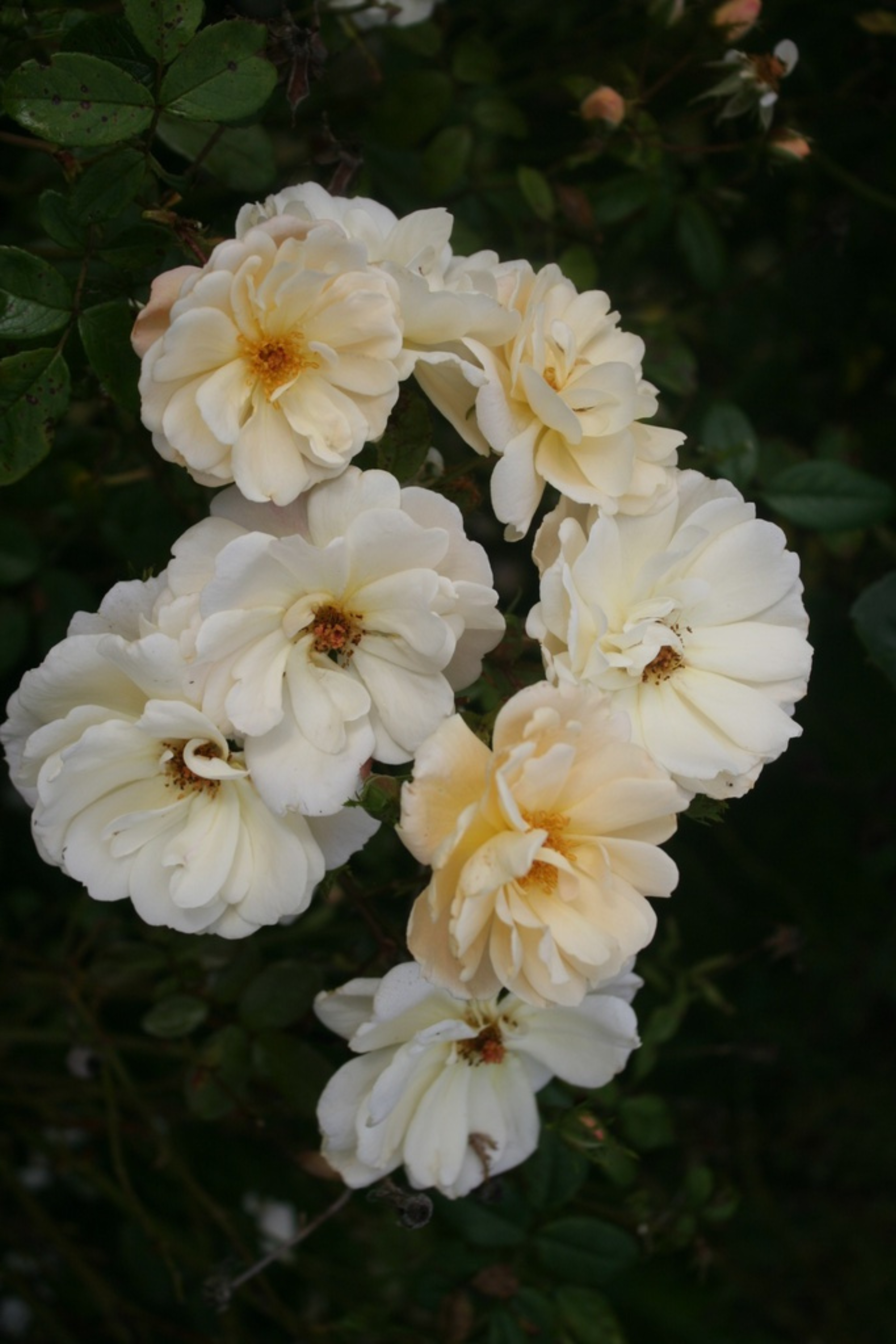 'Machera' is een moderne heesterroos met grote, halfgevulde bloemen in een zachte roomgele tint. De bloemen hebben een losse, luchtige vorm en tonen hun warme oranje hart, wat zorgt voor een natuurlijke en elegante uitstraling. Door het open hart is ze een echte bijenmagneet.
