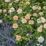 'The Lady Gardener' is een Engelse roos met grote, gevulde bloemen in warme abrikoos- tot perzikkleurige tinten die naar de randen toe lichter worden. De bloemen hebben een klassieke rozetvorm en verspreiden een uitgesproken geur met tonen van thee en vanille. Deze roos bloeit doorlopend van de vroege zomer tot in de herfst en geeft daarbij steeds nieuwe bloemen.