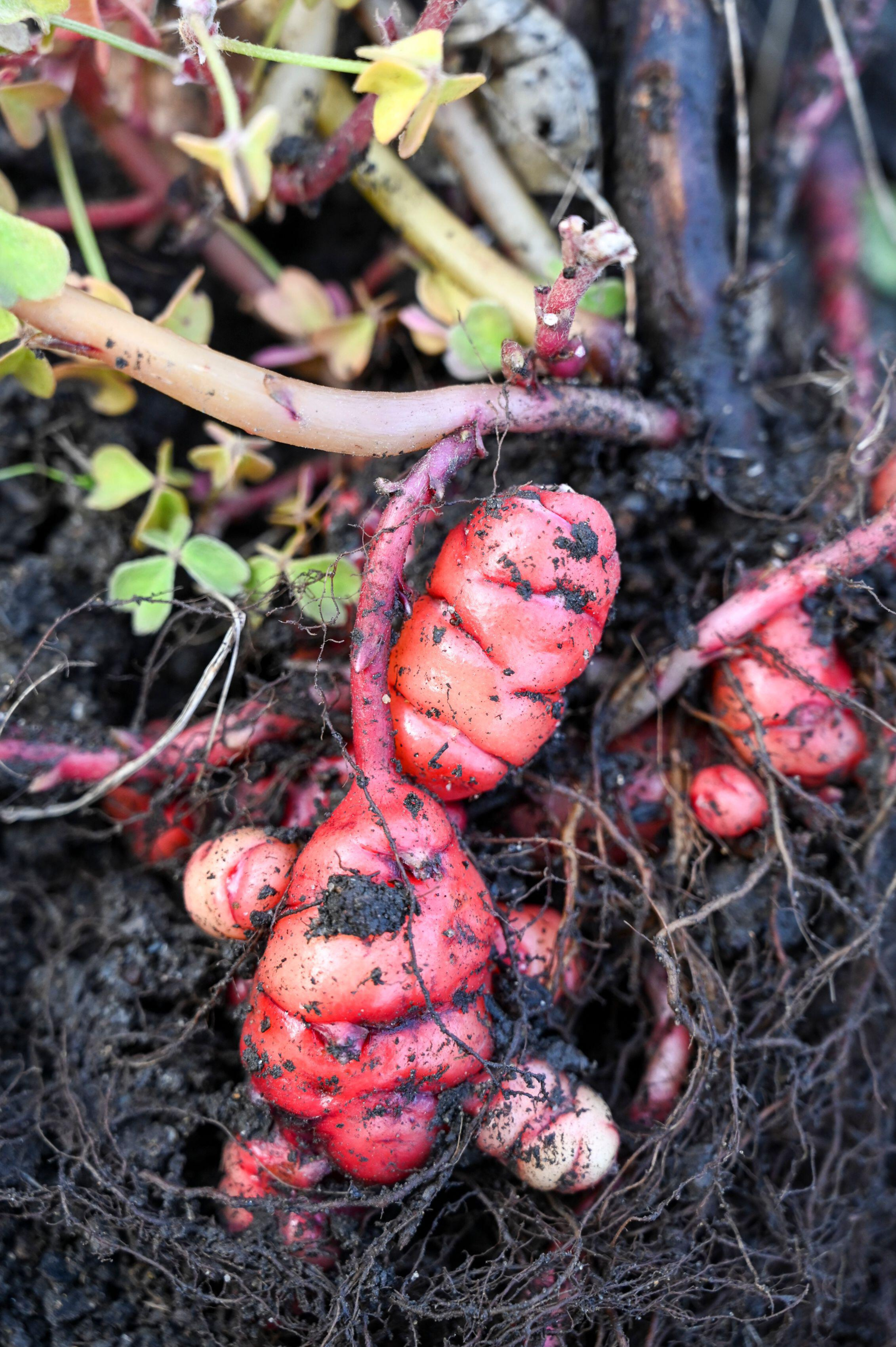 Klaverzuring stelt weinig eisen qua groeiomstandigheden. De plant houdt wel van een zonnig plekje en heeft niet graag natte voeten, maar verder vindt ze het allemaal wel oké. Je kan oca ook in pot kweken. Graaf de knollen op in het late najaar, net voor de eerste vorst. De knollen zijn afkomstig uit het Andesgebergte en vormen zich van zodra de dagen korter worden. Gebruik een deel ervan in de keuken en bewaar de rest op een koele, vorstvrije plek tot het volgende plantseizoen. Oxalis tuberosa ‘Pink’ is een verrassende toevoeging voor je moes- of kruidentuin.