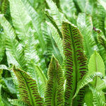 Asplenium scolopendrium of tongvaren vormt stevige rozetten van glanzende, frisgroene bladeren die als linten omhoog krullen. Ze hebben geen fijn vertakte veertjes zoals andere varens, maar brede, golvende bladeren. De tongvaren houdt van schaduw en vochtige grond. Zet de plant aan de voet van bomen of in een schaduwhoek. 's Winters blijft deze varen groen, dus ze is een absolute aanwinst om structuur toe te voegen in de tuin.