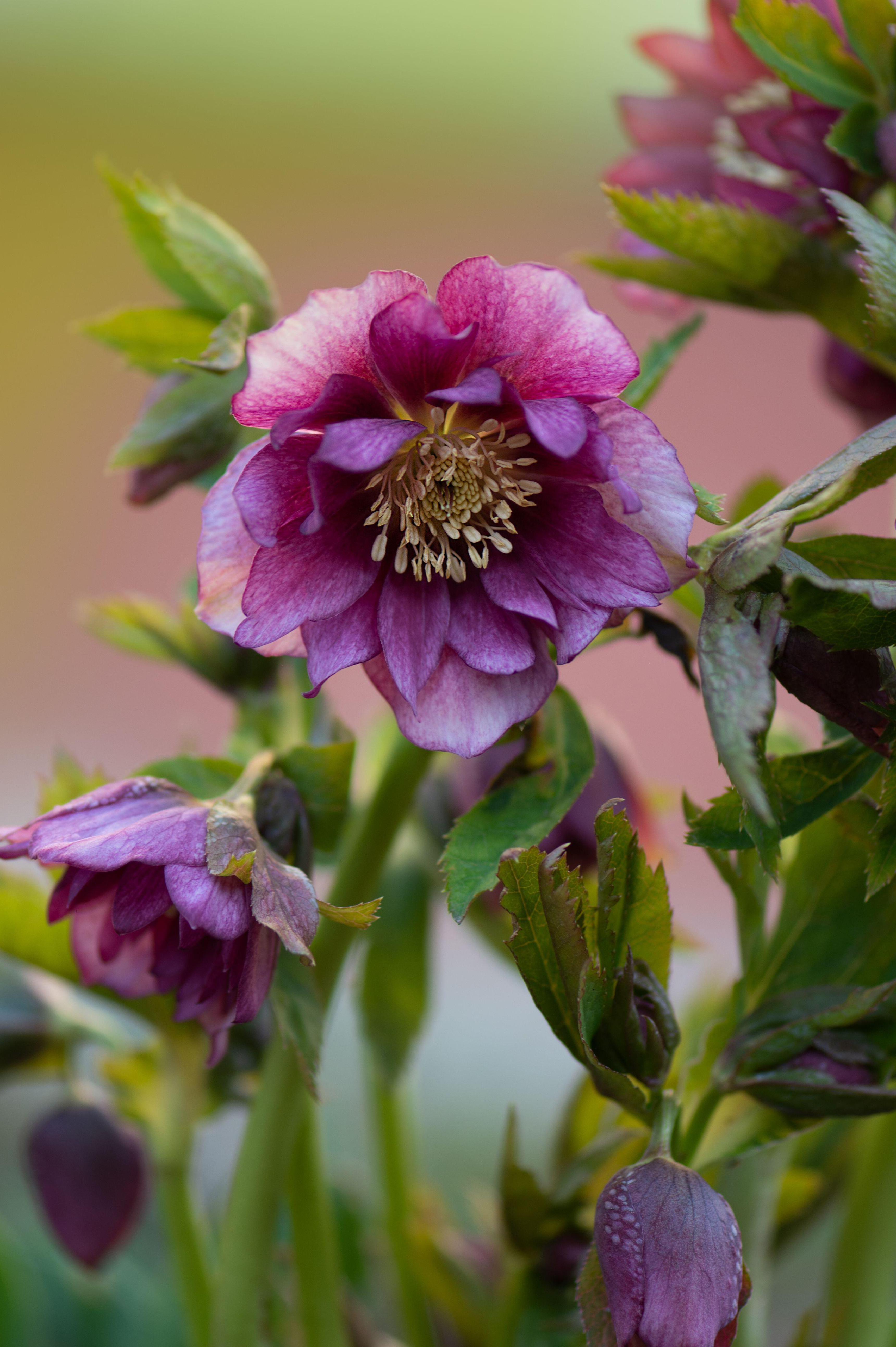 Helleborus orientalis ‘Double Ellen Pink’ bloeit met prachtige, zachtroze tinten in de tuin op een moment dat kleur nog schaars is. In combinatie met het donkergroene, glanzende blad zorgt deze Helleborus voor een verfijnde en rustige sfeer in schaduwrijke delen van de tuin. Verwijder oude, droge bladeren in het najaar om de plant te stimuleren tot nieuwe groei en bloei.