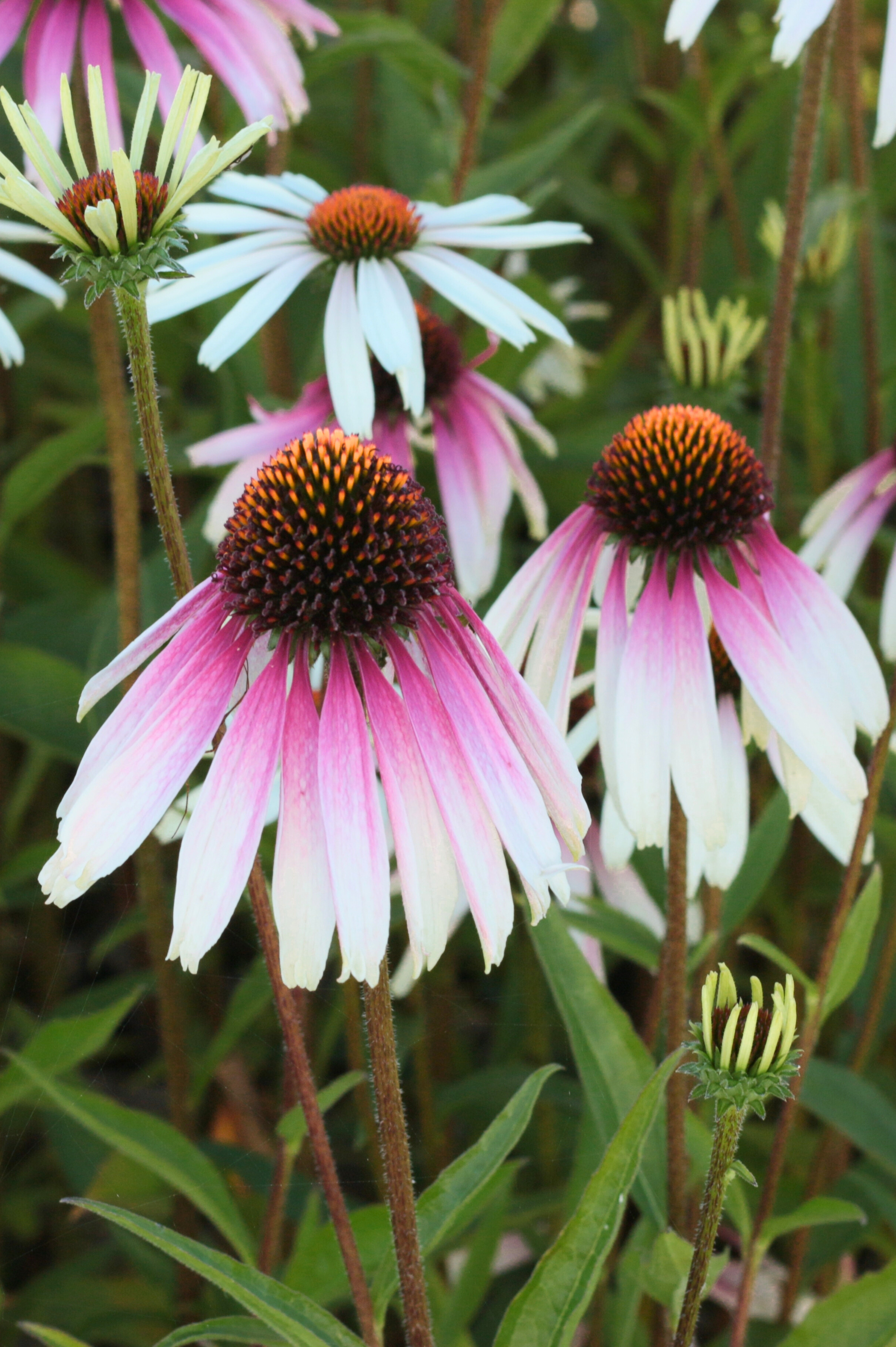 De Echinacea purpurea 'Pretty Parasols’ heeft haar naam niet gestolen: haar bloemblaadjes staan gebogen naar beneden als een parasolletje. Vanuit het bloemenhart kleuren ze roze en gaan over in wit. De plant groeit vrij compact, maar maakt met haar bloemen van verschillende hoogte veel impact in de border. Zowel in kleine tuinen als grote borders komt ze volledig tot haar recht en ze is ook nog eens een lekker hapje voor bijen en vlinders.