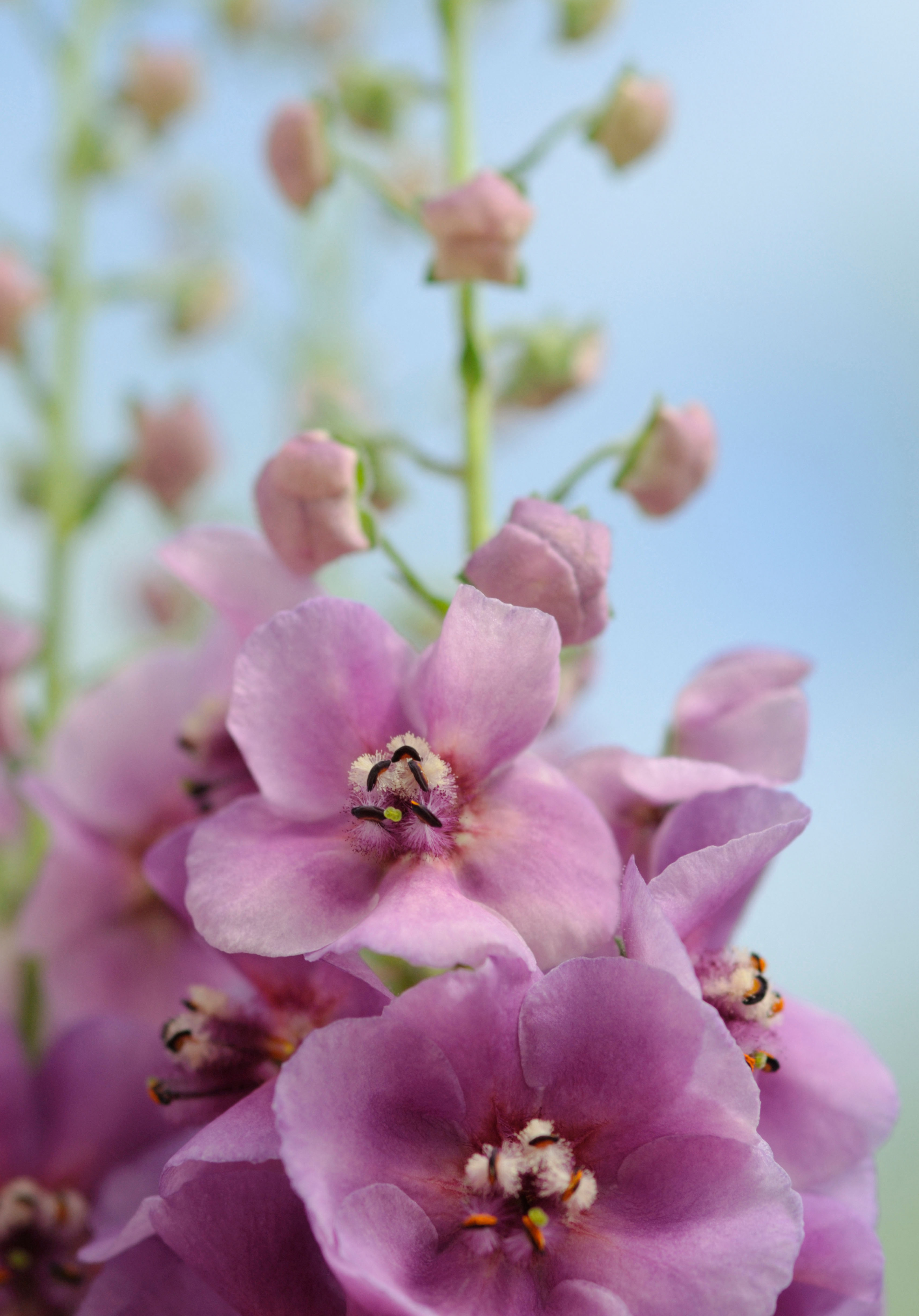 Verbascum ‘Sugar Plum’ is een vaste plant met toortsvormige aren in paarsroze tinten. De bloemen openen zich van onder naar boven en bloeien van juni tot september, waarbij ze bijen en andere bestuivers aantrekken. Het viltige blad vormt een mooi groot rozet aan de voet.
