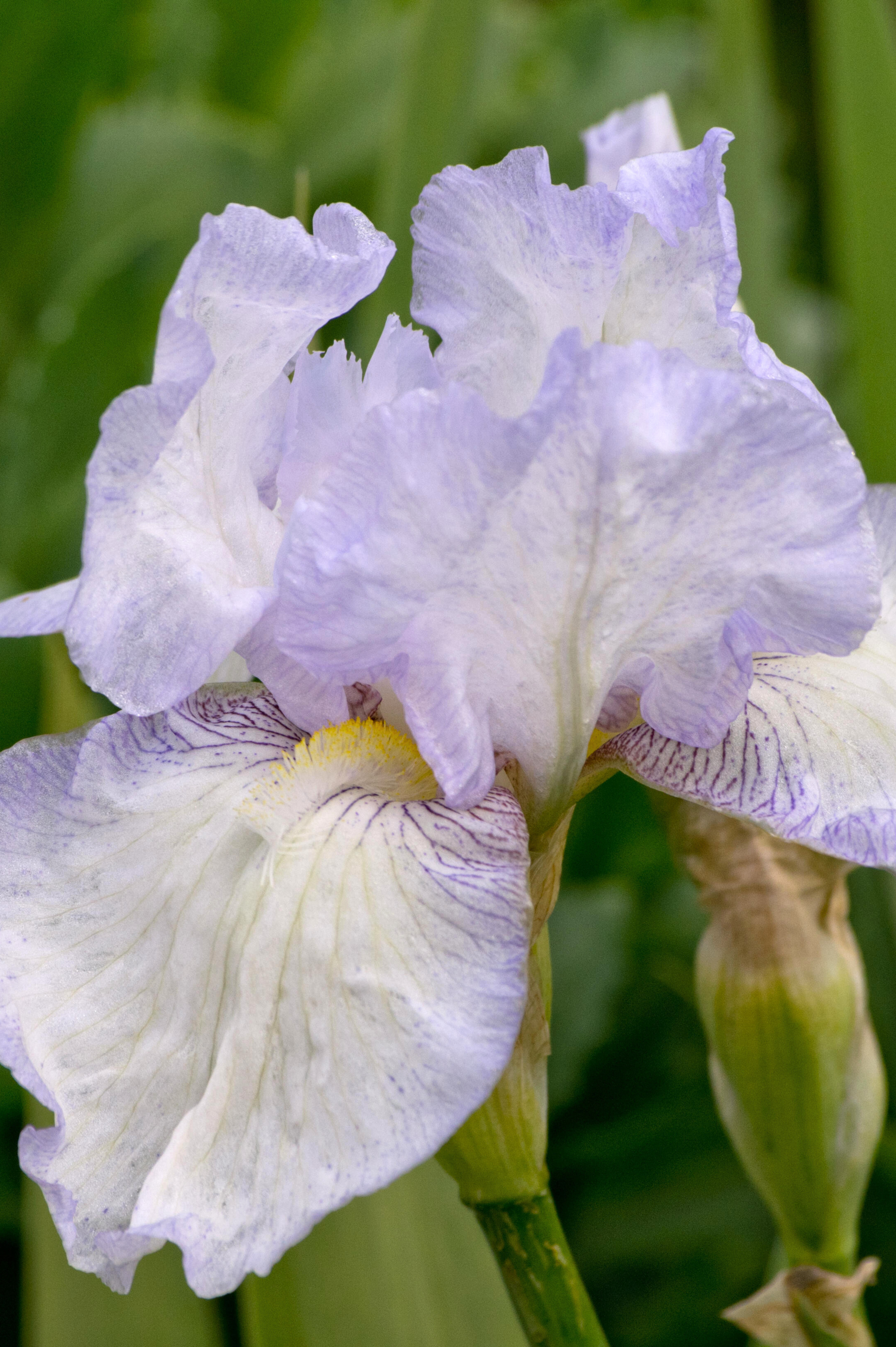Iris ‘English Cottage’ is een elegante baardiris met grote, zachtwitte bloemen waarover een feeërieke, lila zweem ligt. De bloemen bloeien vanaf mei op stevige stelen boven de zwaardvormige bladeren. Door haar ingetogen kleuren en klassieke bloemvorm past deze iris perfect in romantische cottagetuinen en rustgevende borders.