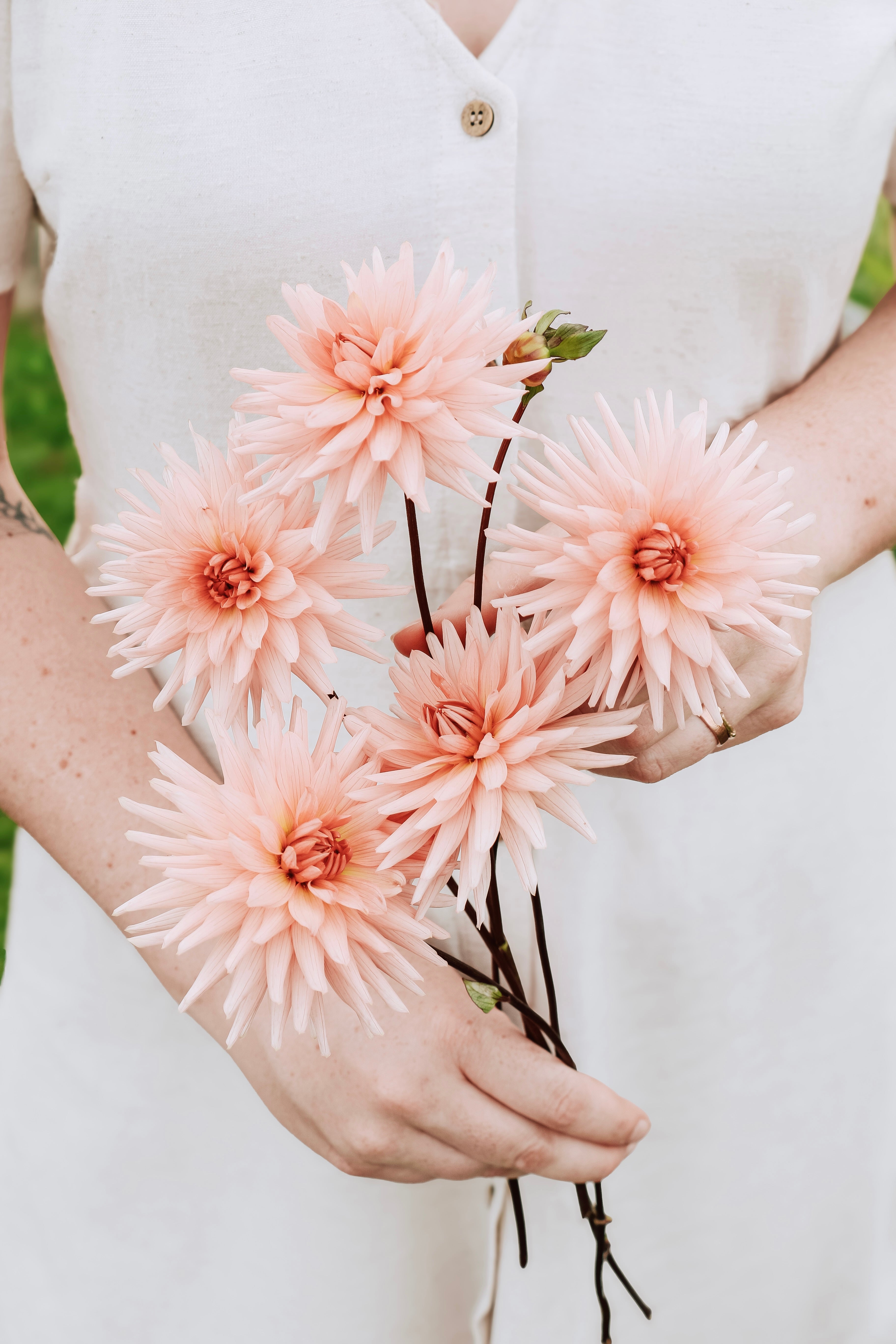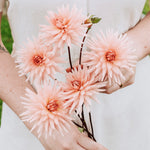 I absolutely wanted to offer this cactus dahlia. And here she is! The stunning flower shape, the soft pink color: I truly recommend her for everyone's garden. She pairs beautifully in bouquets but also performs fantastically as a border plant among perennials. She holds well in a vase and is very productive. The more you pick, the more blooms you'll see. An insanely beautiful flower.
