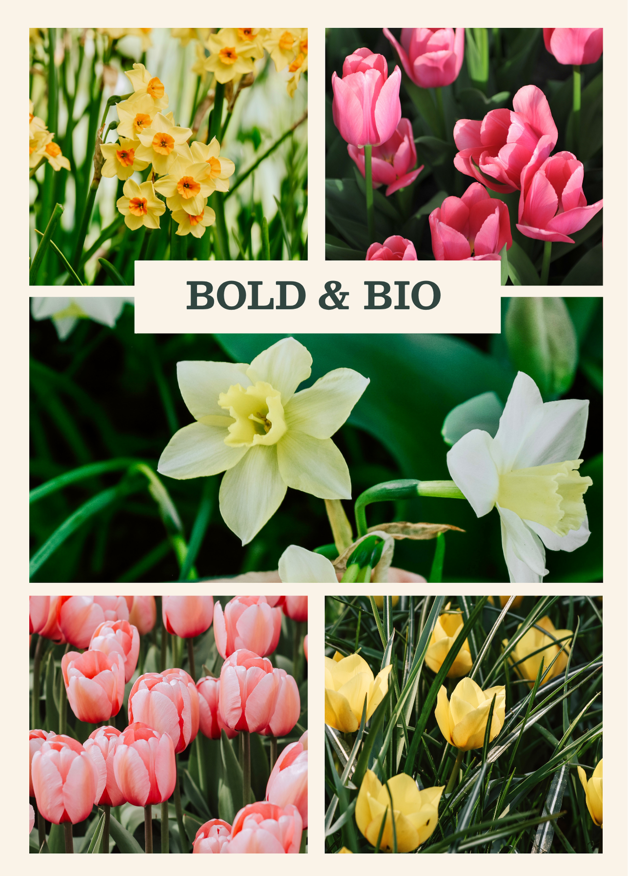 With Bold & Bio, you bring a spring mix into your home that not only bursts with color, but is also 100% organically grown. No chemical fuss, just honest bulbs that thrive in any garden – and make bees happy. This mix combines soft pastels with some more vibrant colors. From lemon yellow to salmon pink, with an occasional splash of color.