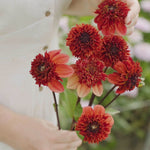 Adam's Choice is a graceful anemone dahlia with warm copper to apricot hues that deepen towards the heart of the flower. The petals have a unique shape that adds an accent to the border. This dahlia blooms for an extended period from summer until the first frost and, thanks to its sturdy stems, is ideal for the border, the cutting garden, and even in pots.