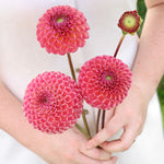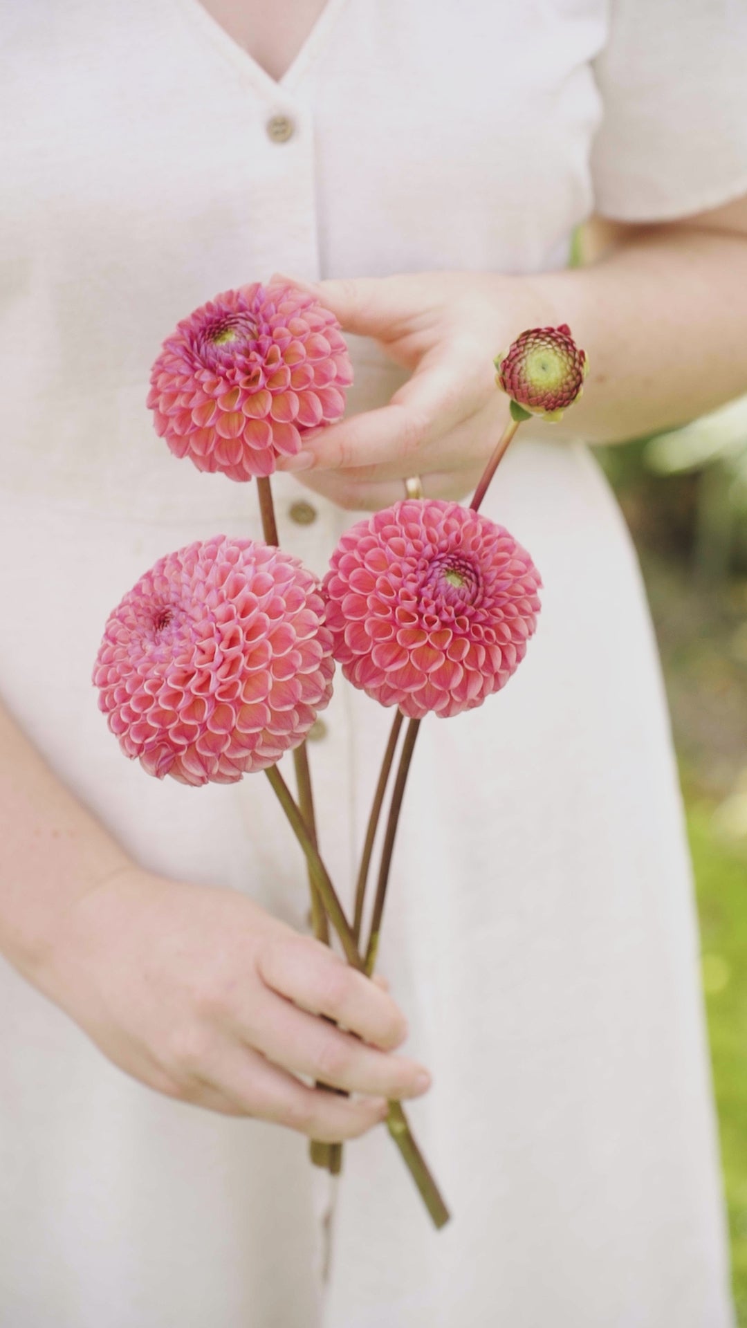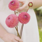 A personal favorite! Pompon dahlia with small, perfectly round flowers in soft peach and creamy pink hues. Abundantly blooming with sturdy, long stems: ideal for picking, as the small flowers can be tucked in anywhere. Easy to combine in bouquets and adds a lovely structure to the border.