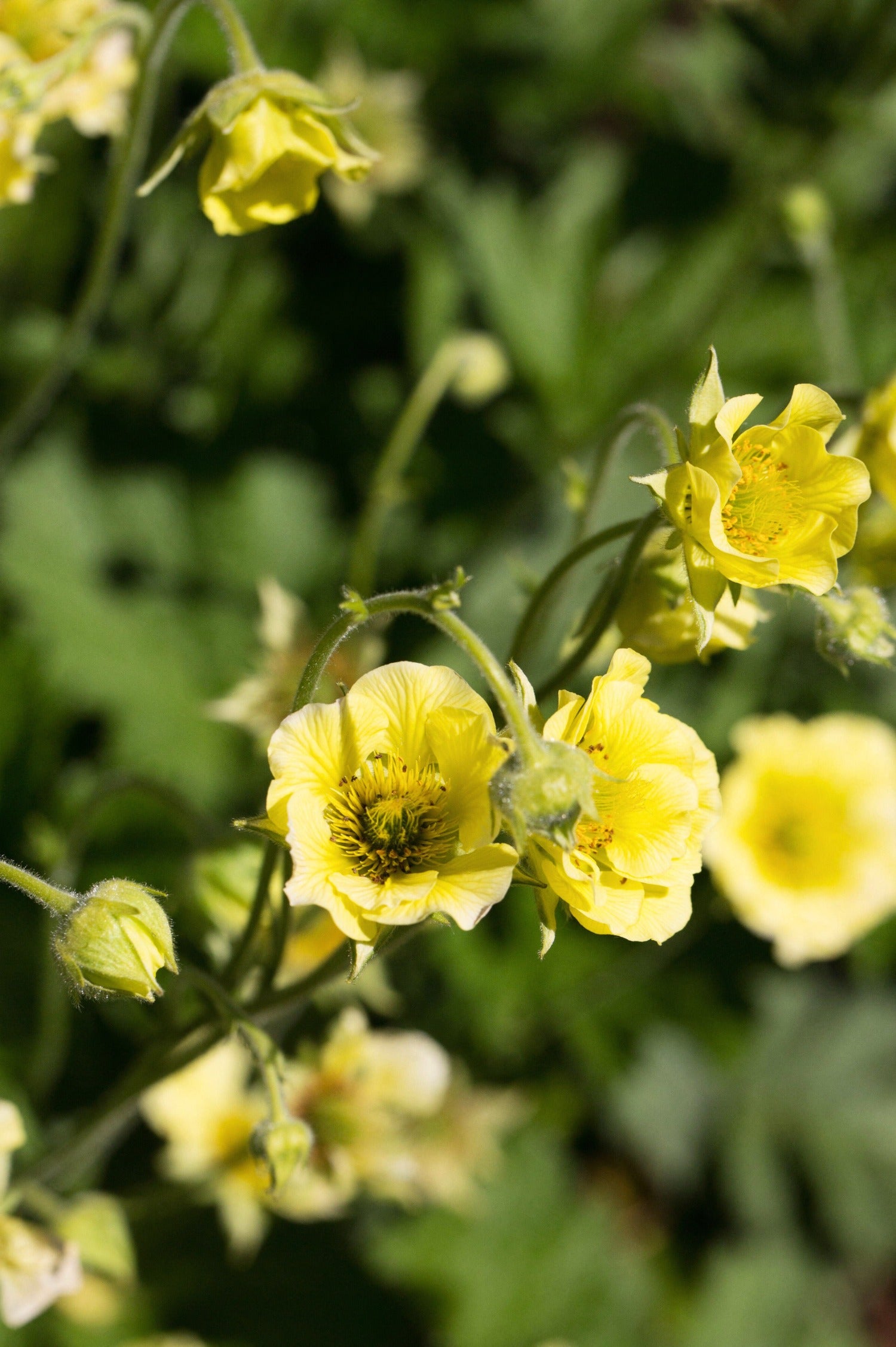 Geum ‘Banana Daiquiri’ is een vrolijke, rijkbloeiende vaste plant met zachte, botergele bloemen die licht boven het blad lijken te zweven. De halfgevulde bloemen verschijnen vanaf het late voorjaar en blijven vaak tot diep in de zomer doorbloeien. Ze staan op fijne, vertakte stelen en geven de border een luchtig en speels karakter. De bloemen trekken bijen en andere bestuivers aan en combineren prachtig met zowel zachte pasteltinten als warmere kleuren.