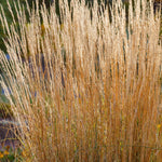 Calamagrostis acutiflora ‘Karl Foerster’ is een van de meest betrouwbare en geliefde siergrassen voor de tuin. Het rechtop groeiende gras vormt strakke pollen met smal, frisgroen blad en stevige, opgaande bloeiaren die vanaf juni verschijnen. De aren kleuren van groen naar goudbruin en blijven tot diep in de winter decoratief, waardoor ze structuur en ritme brengen in de border, zelfs in het koude seizoen.