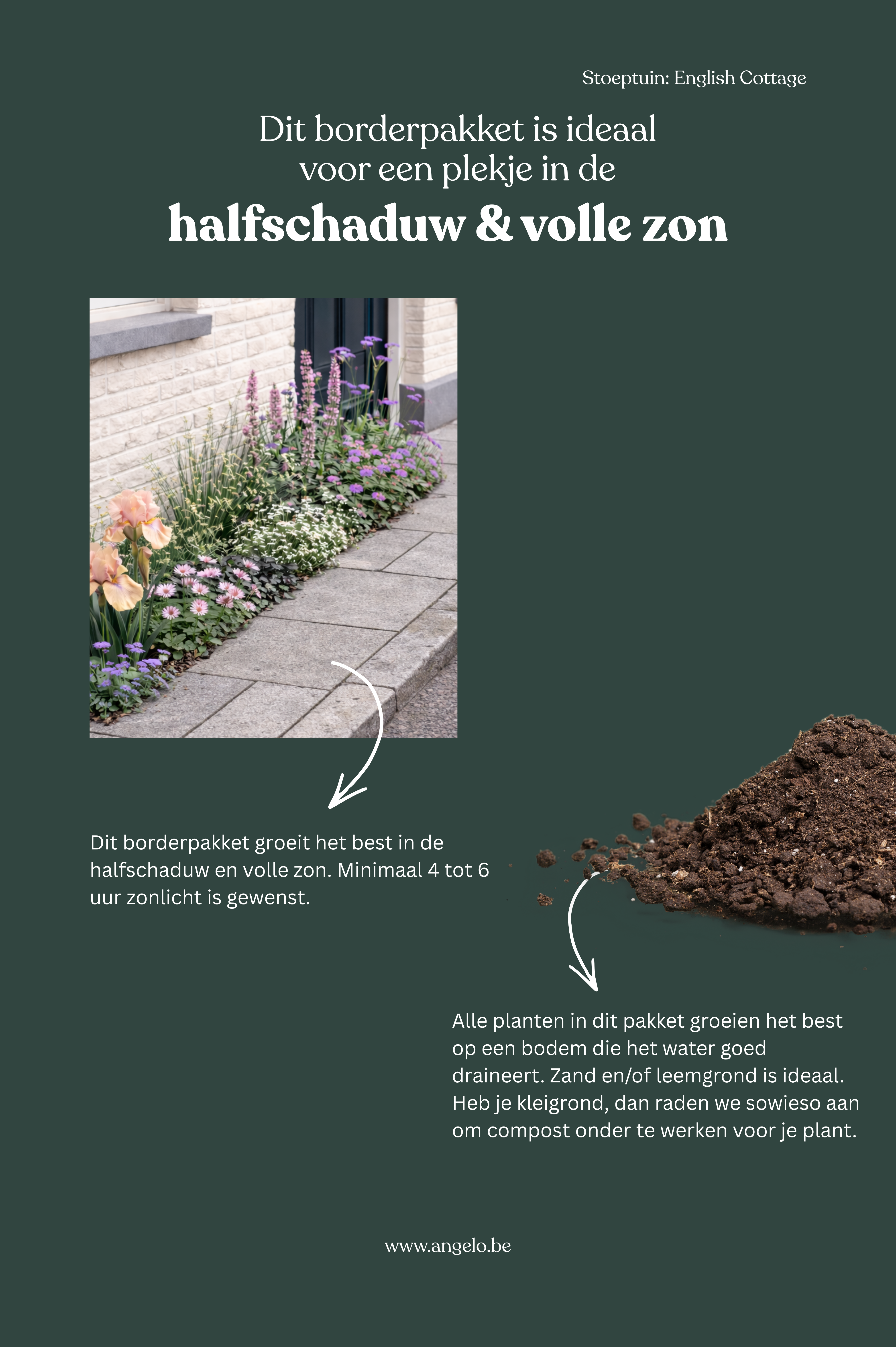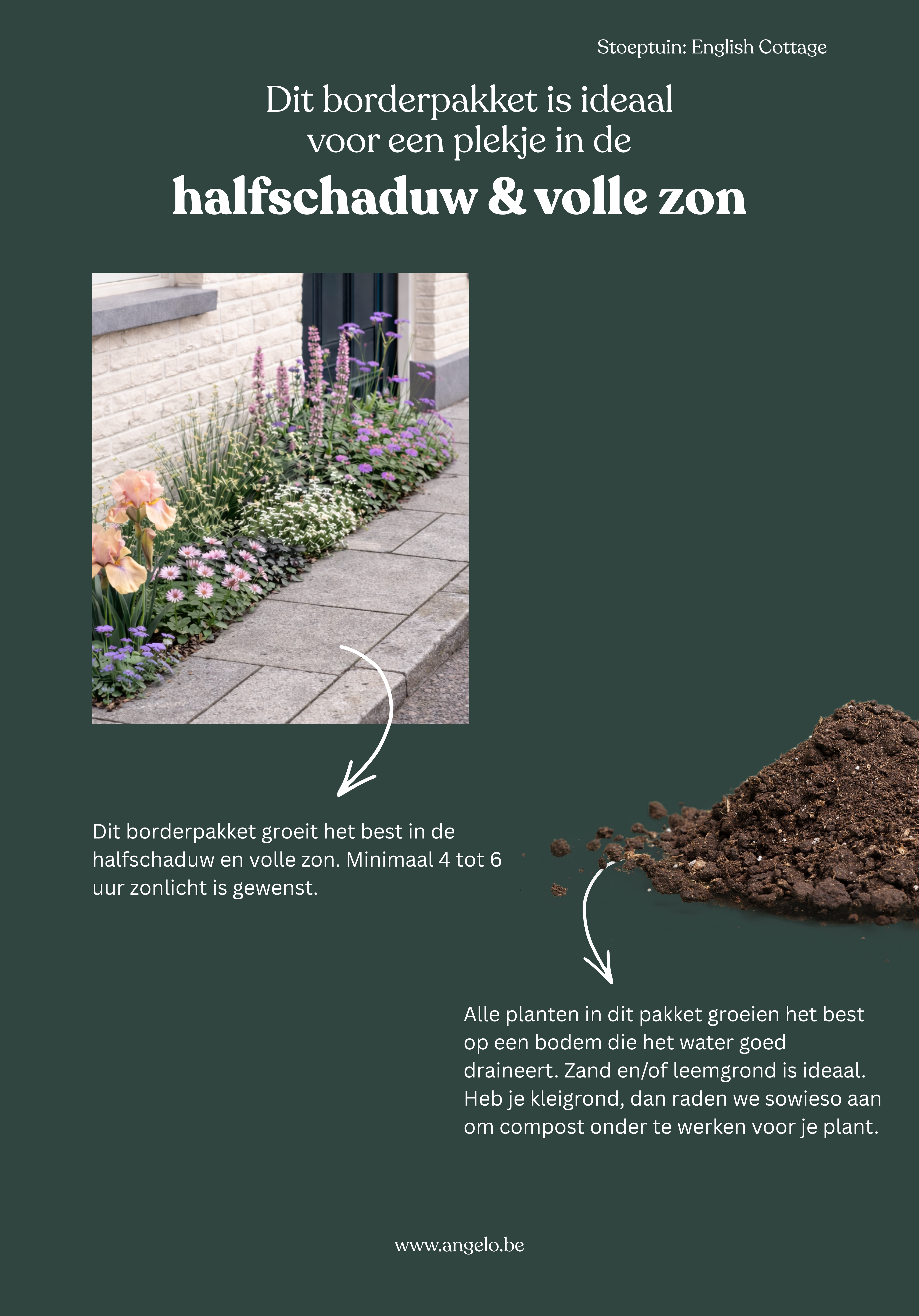 Angelo Dorny is tuinontwerper. Hij kent planten als geen ander en weet altijd de mooiste bordercombinaties te maken. Voor dit pakket selecteerde hij planten die samen een ontspannen, romantisch geheel vormen zonder tuttig te worden, specifiek geschikt voor een stoeptuin of geveltuin. De nectarrijke bloemen trekken gedurende het hele seizoen vlinders, bijen en zweefvliegen aan. Het resultaat is een border die eruitziet alsof hij spontaan gegroeid is, maar waarbij elke plant een zorgvuldig gekozen rol speelt. Met dit borderpakket breng je Angelo's visie van een charmante, levendige cottage tuin naar je voorgevel, en dat zie je elke keer als je thuis komt.